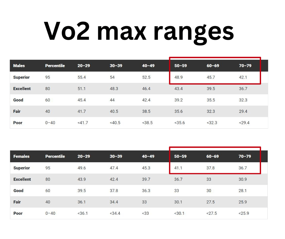 Suggested VO2 max ranges for us older runners